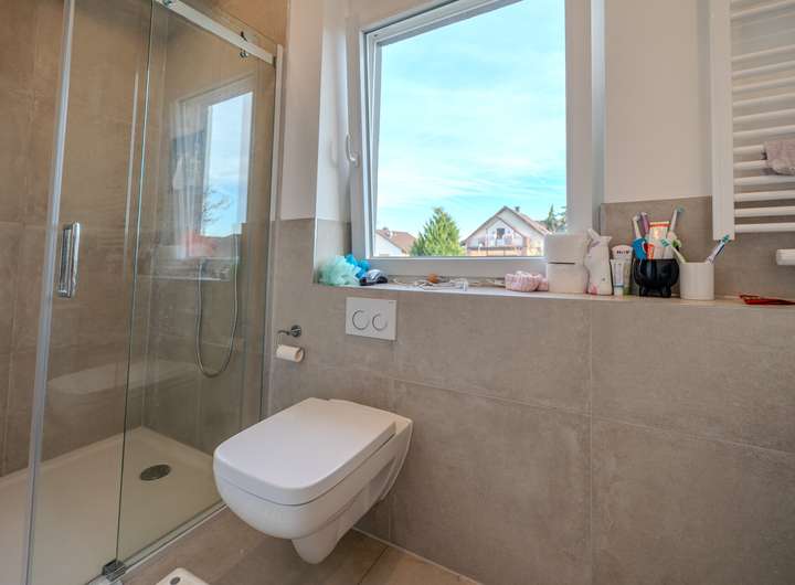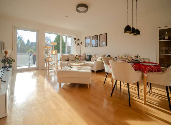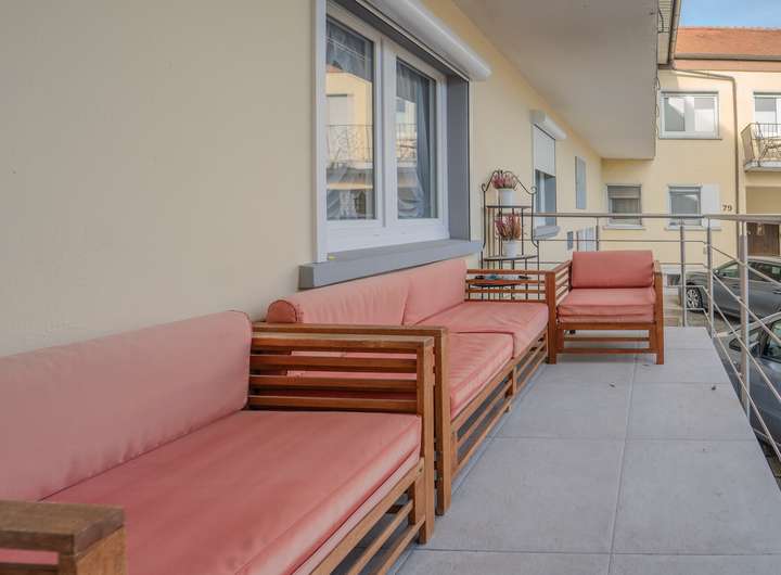 Zur Ausstattung gehören doppelt verglaste Kunststofffenster, moderne Tageslichtbäder sowie Bodenbeläge wie Parkett oder Fliesen. Fußbodenheizung ist in mehreren Einheiten vorhanden. Zusätzlich bieten Balkone und ein kleiner Gartenbereich einer Wohnung angenehmen Wohnkomfort.