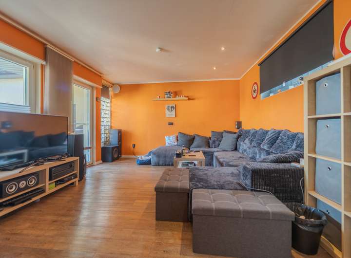 Im direkten Umfeld befinden sich sämtliche Einrichtungen des täglichen Bedarfs: Supermarkt, Bäcker, Apotheke, Ärzte sowie Schulen und Kinderbetreuungseinrichtungen sind binnen weniger Minuten erreichbar. Die flache Umgebung bietet zudem hohen Freizeitwert, insbesondere durch den Riedsee mit Segelschule, der bequem mit dem Fahrrad erreichbar ist.