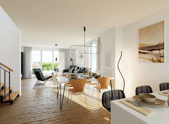 Dieses moderne Neubauprojekt bietet Ihnen auf zwei Etagen ca. 117 m² Wohnfläche und kombiniert stilvolles Wohnen mit praktischer Raumaufteilung. In dem Baugebiet sind sechs Reihenhäuser mit 4,5 Zimmern im KfW-55-Standard geplant, verteilt auf zwei Etagen.