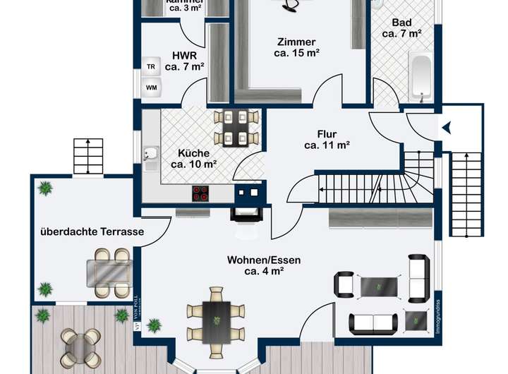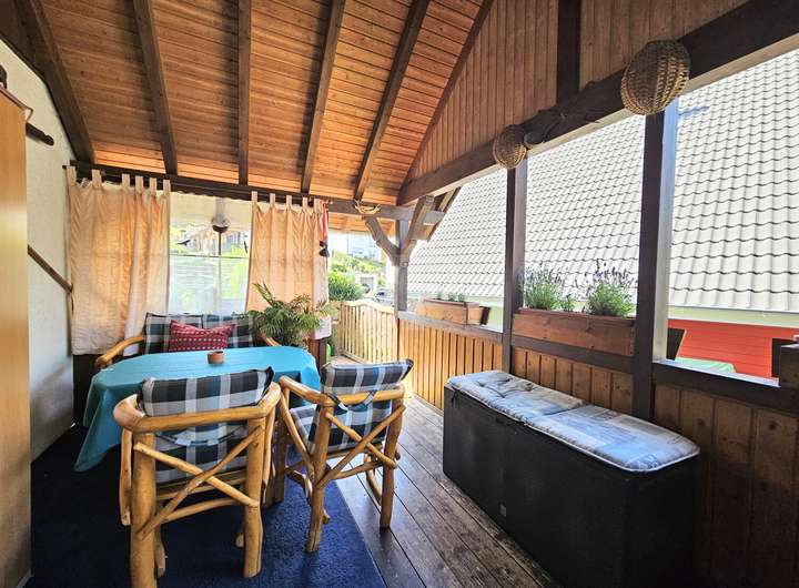 - überdachte Terrasse am Wohnzimmer im Erdgeschoss