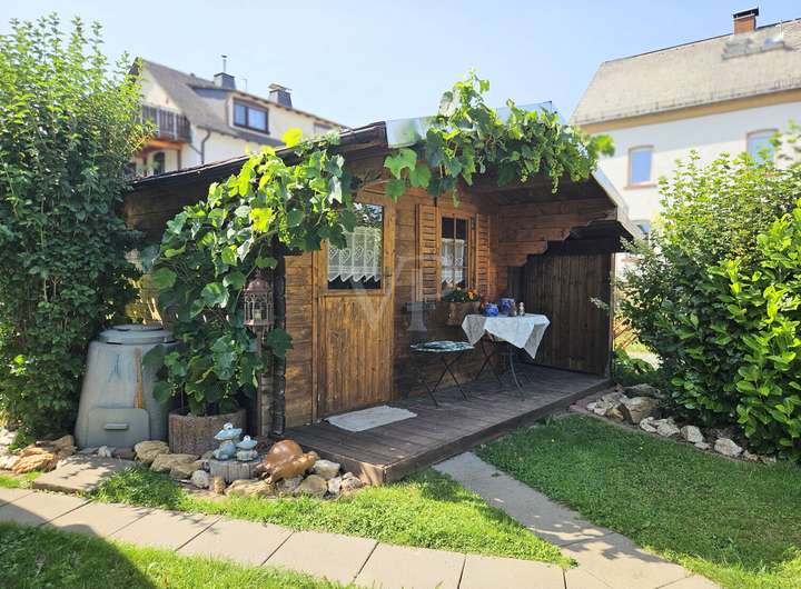 Der schön angelegte Garten mit diversen Obstbäumen, großer Rasenfläche und einem Gartenhäuschen bietet Hobbygärtnern viele weitere Gestaltungsmöglichkeiten. Auch das bei Kinder allseits beliebte Trampolin oder ein Sandkasten finden hier reichlich Platz. Außerdem ist im Garten ein Wohnmobilstellplatz integriert.