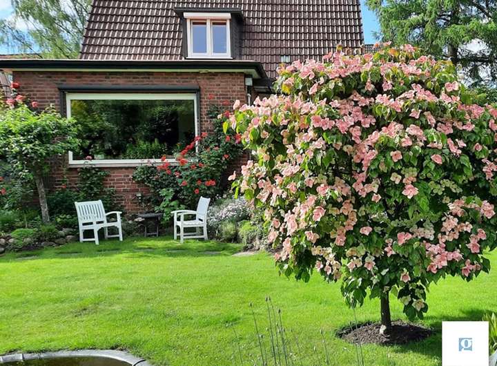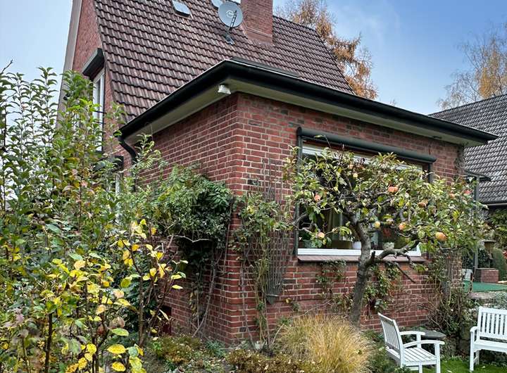 Typisch Alsterdorfer Gartenstadt. Dieses Einfamilienhaus aus den 30er Jahren vereint den klassischen Baustil der Hamburger Rotklinkerarchitektur mit dem charmanten Wohnen als Teil der historischen Alsterdorfer Gartenstadt zwischen hohen Buchenhecken und blühenden Gärten. Das freundliche Einfamilienhaus mit Garage aus dem Baujahr 1935 wurde in den vergangenen Jahrzehnten laufend gepflegt gehalten und im Jahr 1963 um einem erdgeschossigen Anbau zum Garten sowie um ein Garage erweitert.