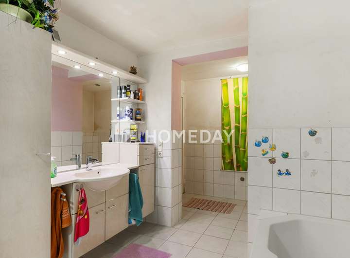 • Die Wohnräume sind überwiegend mit geschmackvollen Fliesen gestaltet.