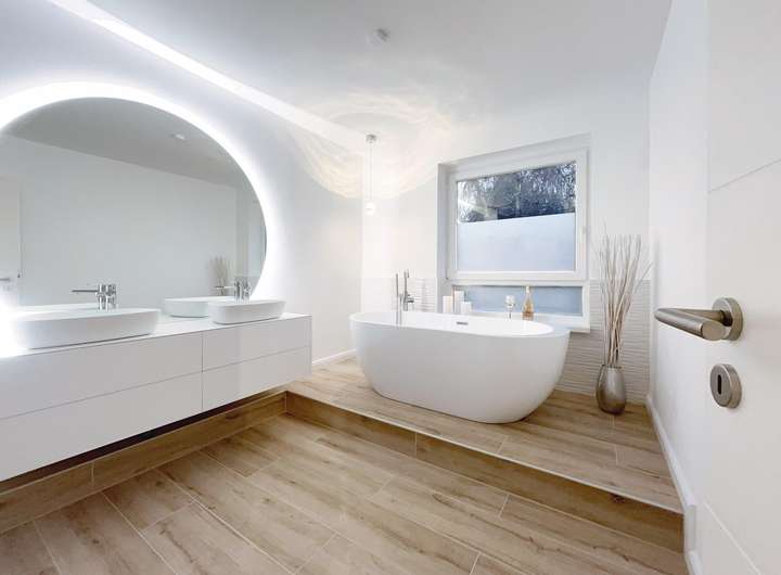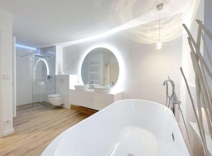 - Bad mit freistehender Badewanne und Walk-In-Dusche