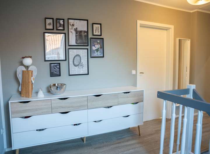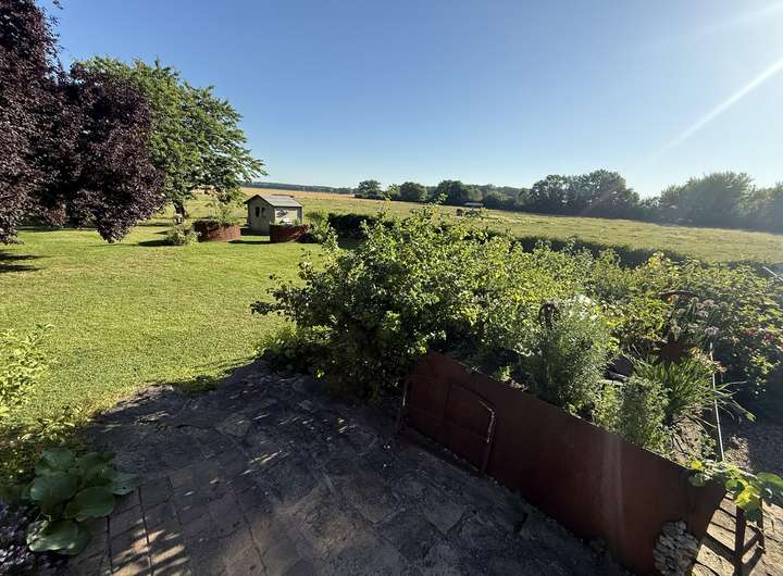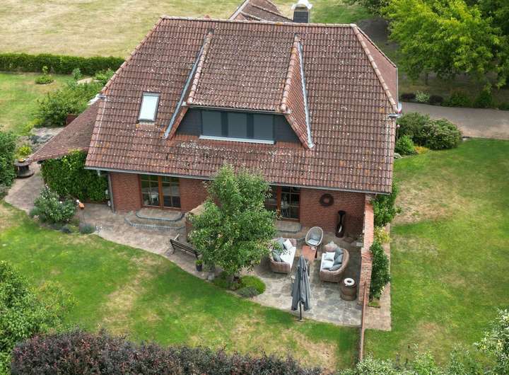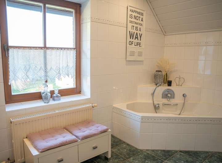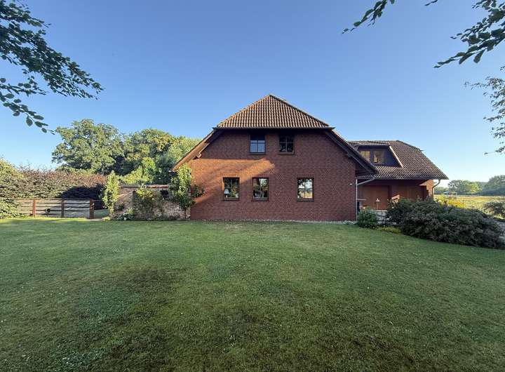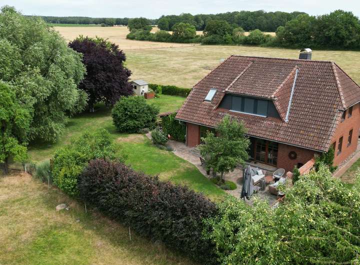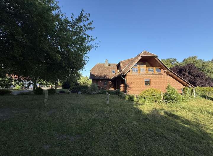 Zum Verkauf steht ein sehr gut erhaltenes Einfamilienhaus in Ortsrandlage mit unverbaubarem Blick. Die untere Etage besteht aus einem sehr großzügigen Wohn- und Essbereich mit einer modernen, hochwertigen Einbauküche. Ein Gäste WC mit Dusche, Wirtschaftsraum und Speisekammer machen die untere Etage vollständig. In der zweiten Etage befinden sich zwei Schlafzimmer jeweils mit Ankleidezimmer und großes Giebelzimmer mit Balkon. Dieser ist nach Osten gerichtet und somit perfekt für ein gemütliches Frühstück mit Blick über die Wiese. Außerdem gibt es oben ein großes Bad mit Dusche und Badewanne, sowie eine offene Galerie mit Leseecke.