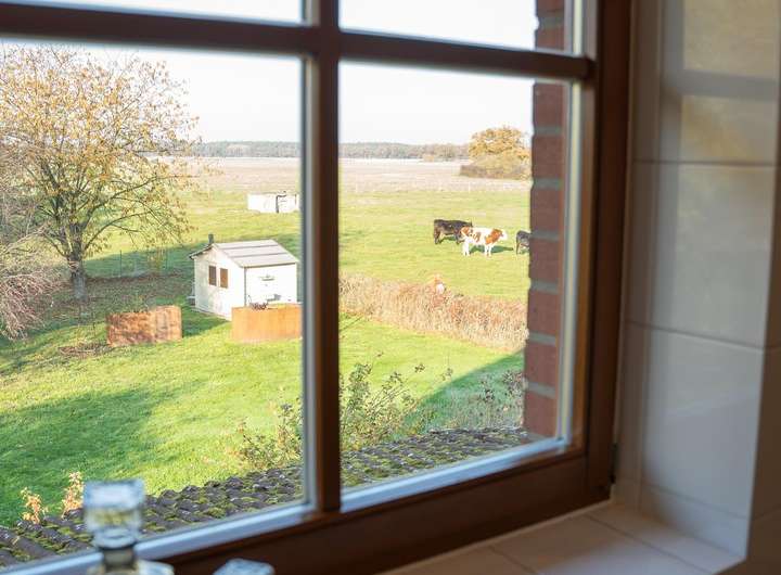 Bei Bedarf ist Tierhaltung auf der angrenzenden Wiese nach Absprache möglich. Die Wiese ist eingezäunt und mit Selbsttränken ausgestattet.