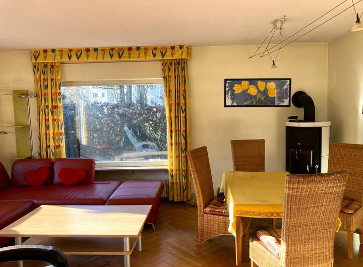 Auf einer Wohnfläche von ca. 100m² bietet Ihnen die Hauptwohnung neben Küche, Bad und Schlafzimmer noch einen großzügigen Wohn- und Essbereich mit direktem Ausgang auf die Terrasse und in den Garten.