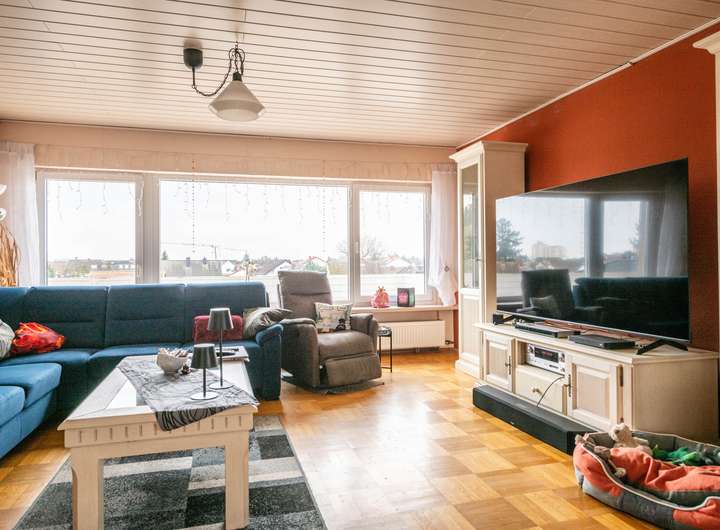 Dieses großzügige Zweifamilienhaus mit einem schönen Grundstück von ca. 582 m² befindet sich in ruhiger und beliebter Wohnlage von Maintal-Bischofsheim. Im Erdgeschoss des Hauses erwarten Sie auf ca. 109 m² ein einladender Dielenbereich, ein geräumiges Wohn- und Esszimmer mit offener Küche, ein vom Platz angemessenes Schlafzimmer und ein helles Kinder- bzw. Arbeitszimmer. Des Weiteren sind ein Tageslichtbad mit Dusche und Wanne und ein praktischer Abstellraum vorhanden. Der schöne Balkon mit Kalt-Wintergarten und süd-westlicher Ausrichtung ist von allen drei Wohnräumen begehbar. Die Wohnung im Obergeschoss, mit ca. 104 m², verfügt über den identischen Grundriss und einen großzügigen Balkon mit tollem Ausblick. Im wohnwirtschaftlich ausgebauten Dachgeschoss des Hauses stehen Ihnen vier helle Zimmer und eine Loggia zur Verfügung. Das Haus ist voll unterkellert. Hier befinden sich neben dem Heizungsraum, drei weitere geräumige Abstellräume und ein Zimmer mit separatem Eingang. Für Ihre PKWs sind drei Garagen mit davorliegenden Stellplätzen vorgesehen.
