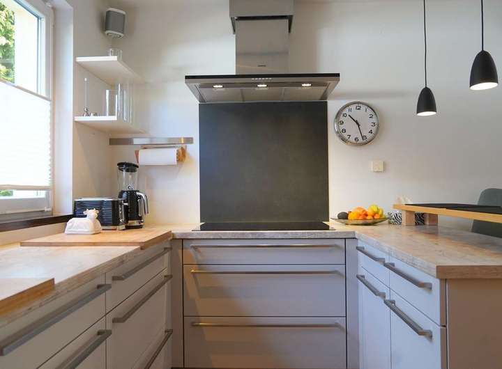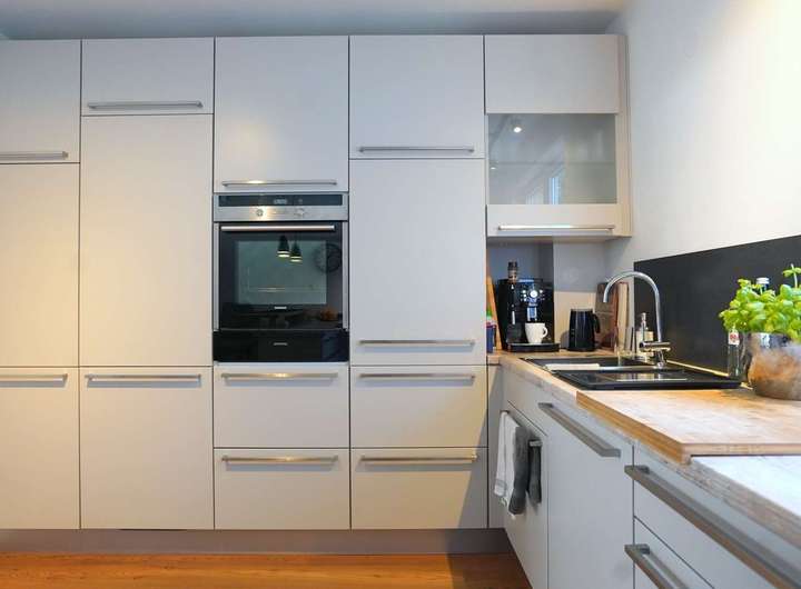 - Elektrogeräte: Geschirrspüler (2024), Wärmeschublade und Abzugshaube (2017), Backofen, Induktionskochfeld und Kühlschrank (2010)