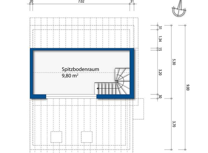 - Ausgebauter Spitzboden mit verschiedenen Möglichkeiten zur Nutzung