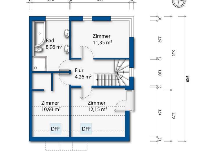 - Fußbodenheizung im Erd- und Dachgeschoss