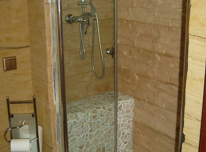 Im Wohnbereich wurde Laminatfußboden verlegt, während der Wintergarten, Teile des Badezimmers sowie einzelne Schlafräume im ansprechenden mediterranen Stil gestaltet sind. Das Badezimmer verfügt über eine ebenerdige Regenfalldusche, die ein modernes und komfortables Wellnesserlebnis bietet.
