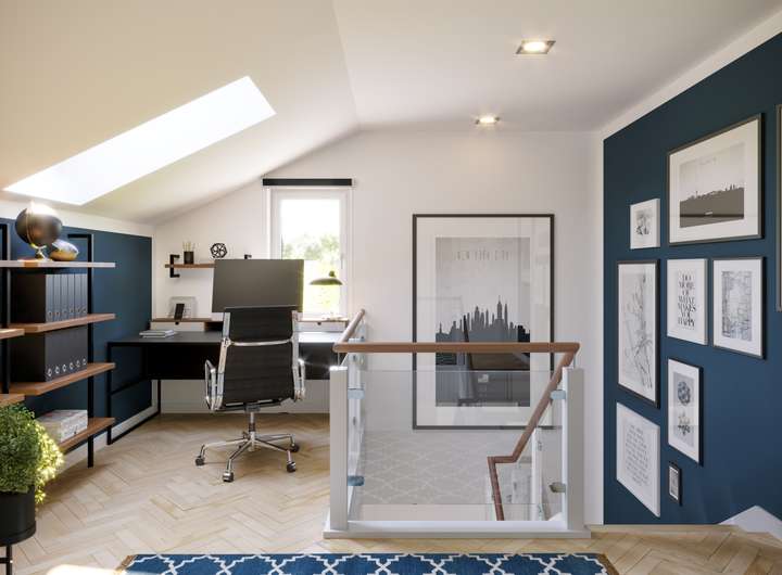 - Dachflächenfenster mit Kipp- und Schwingfunktion sowie elektrischen Rollläden*, wenn laut Grundriss enthalten