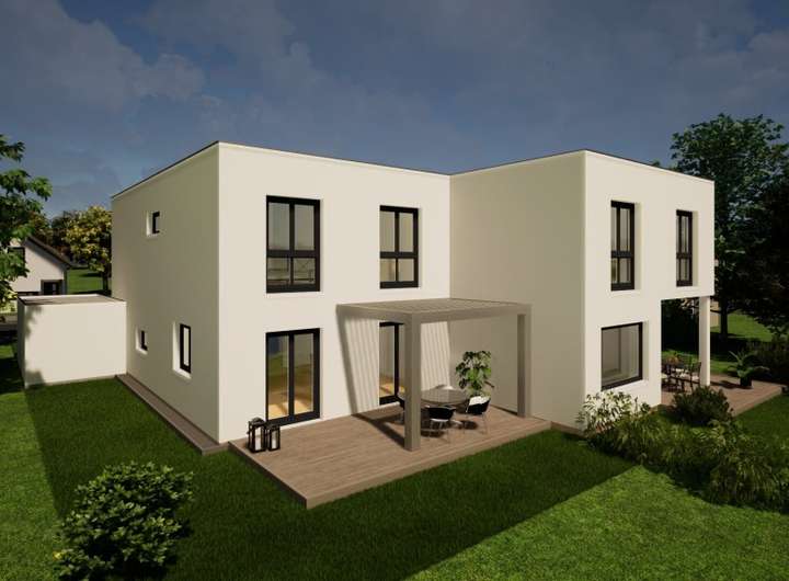 Variante 1 Haus links: ca. 194 m² Wfl., ca. EUR 630.000.– schlüsselfertig, ohne Garage, zzgl. Grundstück (diese Seite & Variante hat sich bereits unser Kunde ausgesucht)