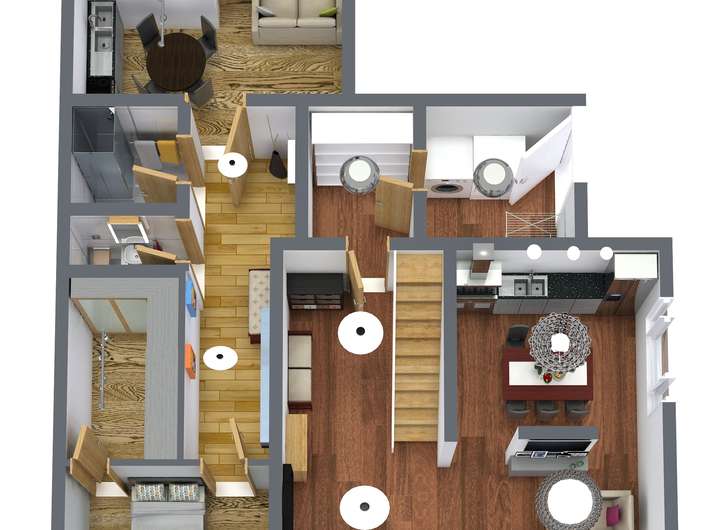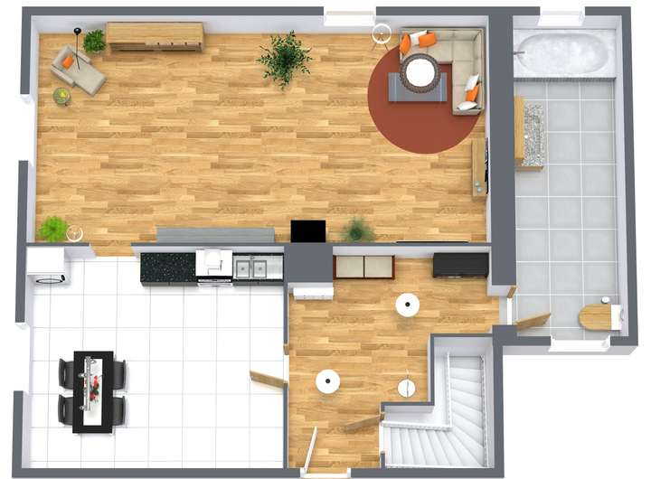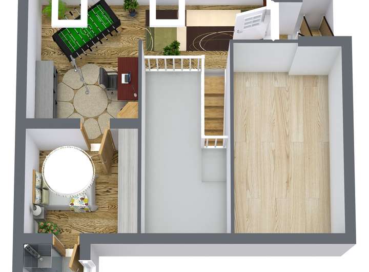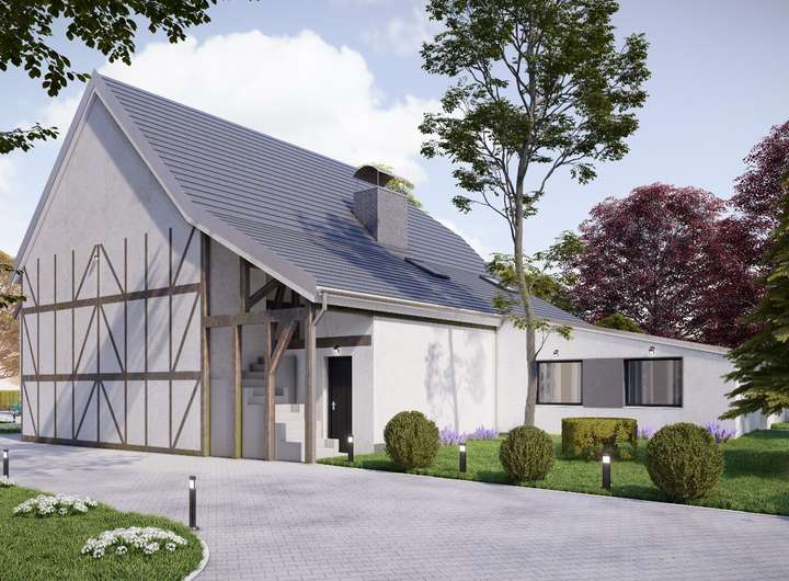 Ein Teil der Außenbilder sind 3D-Visualisierungen und dienen als Beispiel, wie das Objekt nach Sanierung aussehen könnte. Sie zeigen nicht den aktuellen Ist-Zustand.