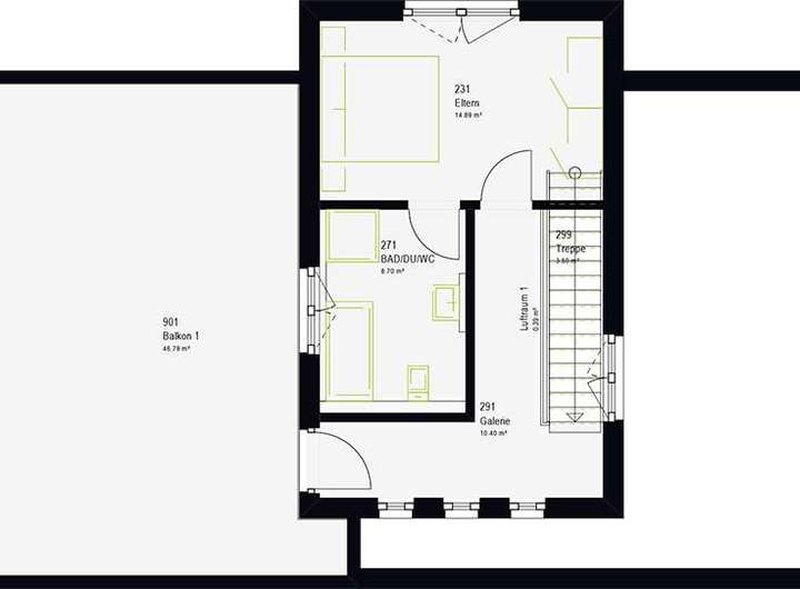 - massa Freiraum = Wohnraumhöhe 2,75 m im EG und DG serienmäßig