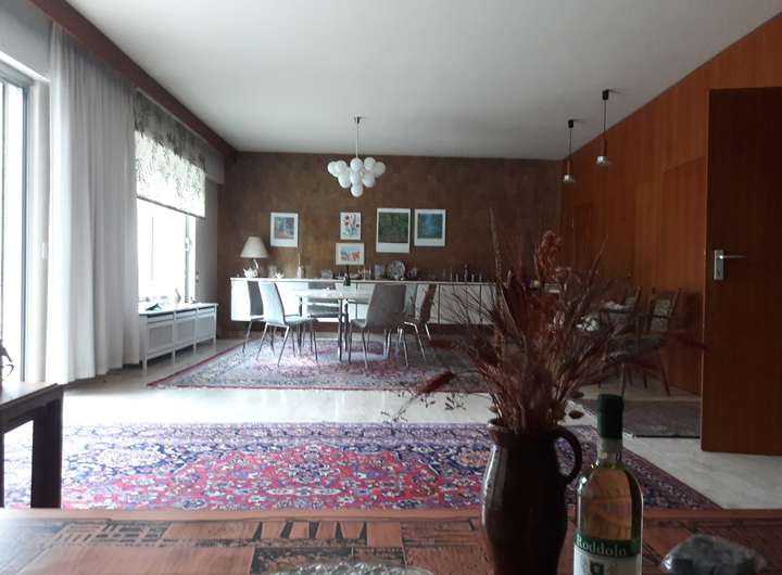 Wohnzimmer und Diele mit Teakfurnierverkleidung