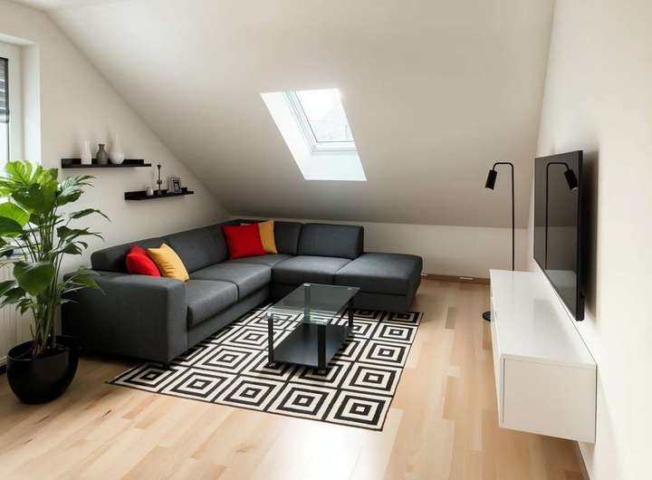 Alle Wohneinheiten verfügen über eigene Balkone oder Terrassen, die eine helle und freundliche Wohnatmosphäre schaffen. Die Grundrisse sind durchdacht gestaltet und bieten eine harmonische Raumaufteilung für modernes und komfortables Wohnen. Ergänzend steht den Bewohnern eine gemeinschaftliche Terrasse zur Verfügung, die zusätzliche Aufenthaltsqualität bietet. Neun Aussen-Stellplätze runden das Angebot ab und gewährleisten eine komfortable Parksituation.