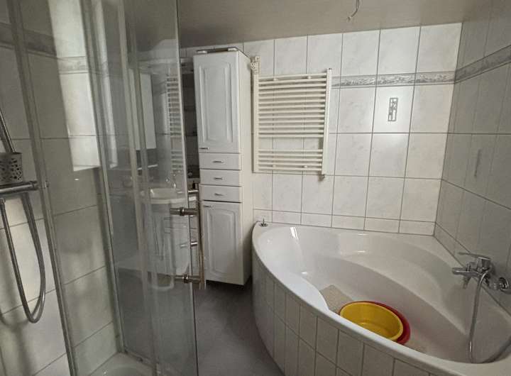 Im Erdgeschoss befindet sich ein Tageslichtbad, das sowohl mit einer Dusche als auch mit einer komfortablen Badewanne ausgestattet ist und hohen Alltagskomfort bietet. Im Obergeschoss ergänzt ein weiteres Tageslichtbad mit Badewanne das Angebot und schafft eine ideale Aufteilung für Familie oder Gäste. Der Balkon ist offen gestaltet und bietet einen sonnigen Platz zum Entspannen oder Genießen der frischen Luft. Der Kamin im Essbereich sorgt für eine behagliche Atmosphäre an kühleren Tagen. Zusätzlich steht der Keller für wertvollen Stauraum zur Verfügung und unterstützt eine effiziente Organisation des Haushalts. Unterschiedliche Bodenbeläge aus PVC/Linoleum, Teppich, Fliesen und Laminat strukturieren die Räume funktional und wohnlich zugleich.