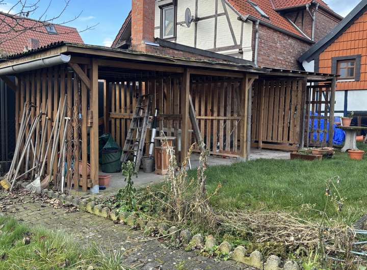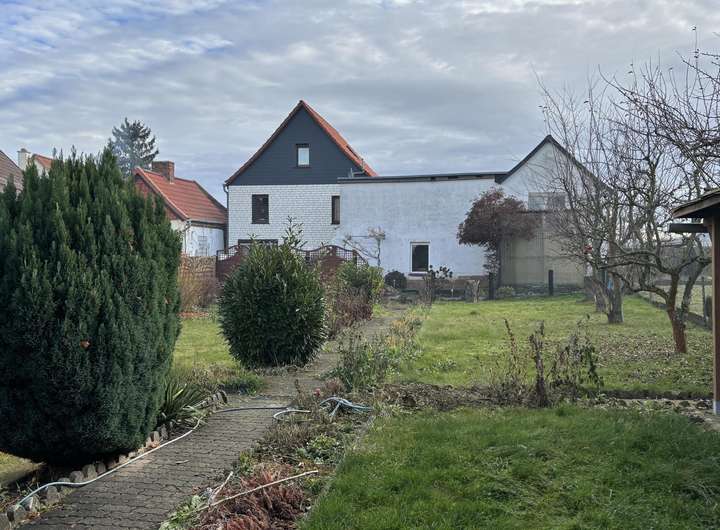 Der Außenbereich bietet ein vielseitiges Umfeld mit großzügigen Gestaltungsmöglichkeiten. Die weitläufige Gartenfläche eignet sich ideal für Sitzplätze, Spielbereiche, einen Nutzgarten oder individuell angelegte Ruheinseln. Eine besondere Stärke des Grundstücks ist die große Scheune mit integrierter Garage, die vielfältige Nutzungsmöglichkeiten eröffnet – von praktischem Stauraum über Hobby- und Werkstattflächen bis hin zu geschützten Stellmöglichkeiten. Durch die Kombination aus nutzbaren Freiflächen und einem funktionalen Nebengebäude entsteht ein Außenbereich, der sich flexibel an unterschiedliche Bedürfnisse und Lebensstile anpassen lässt.