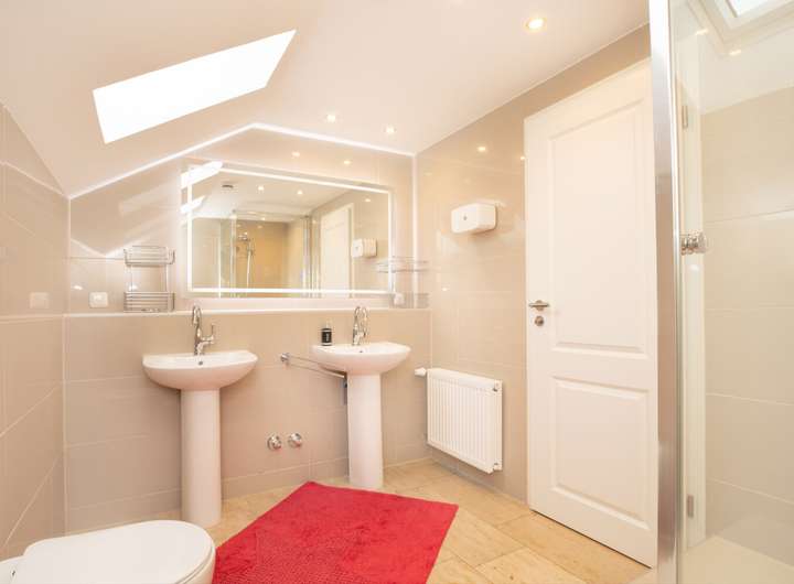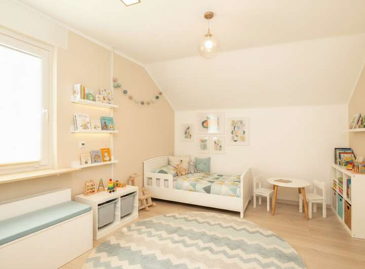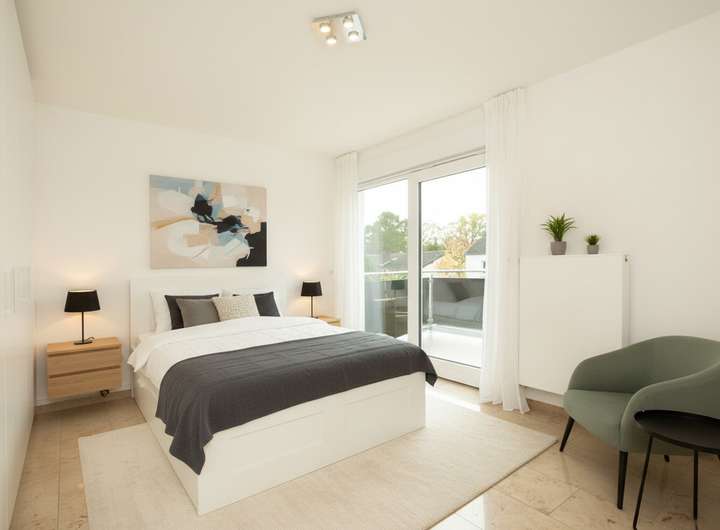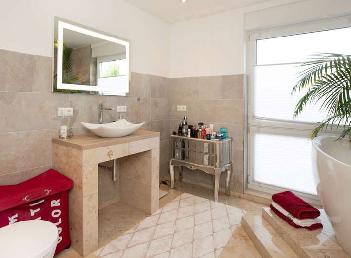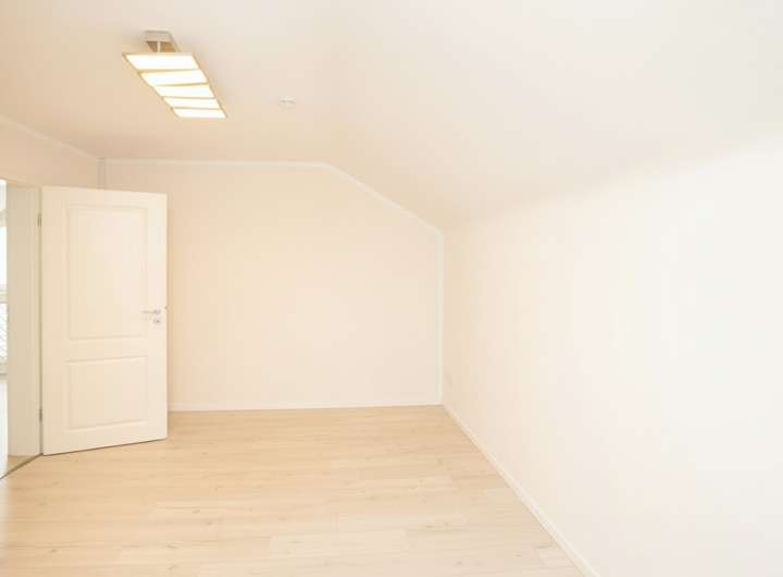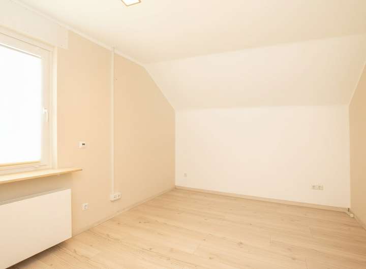 Im Obergeschoss befinden sich insgesamt fünf Zimmer. Ein großes Zimmer wird derzeit als Ankleide genutzt und bietet direkten Zugang zu zwei Tageslichtbädern: einem modernen Wannenbad und einem Duschbad mit Rainshower. Drei weitere Zimmer eignen sich perfekt als Schlafzimmer; eines davon verfügt über einen Zugang zum Balkon. Ein weiteres Zimmer auf dieser Etage kann ideal als Büro genutzt werden und schafft so einen ruhigen Arbeitsplatz im Haus.
