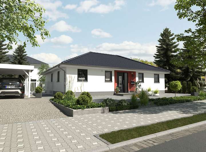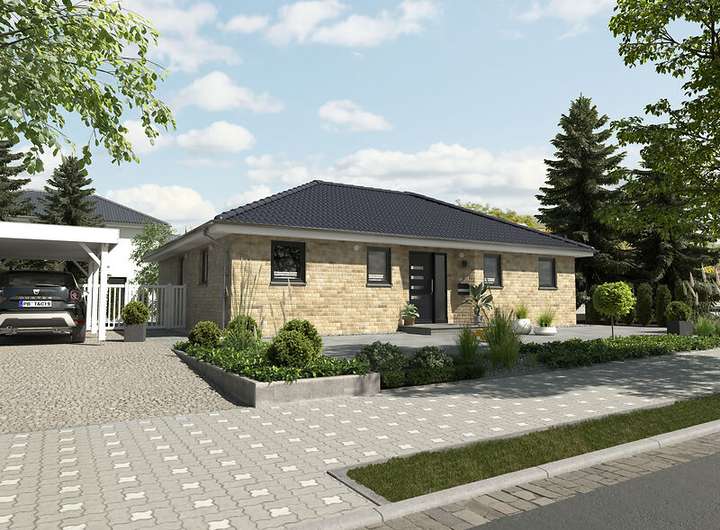 Wohnglück ohne Hindernisse - Dieser Bungalow fällt nicht nur durch sein charmantes Design auf. Die markante Winkelform ermöglicht auch einen variablen Grundriss. Die besondere Raumanordnung des Winkelbungalows 108 sowie die vielen kleinen Details machen das Wohnen für Sie zum Genuss.