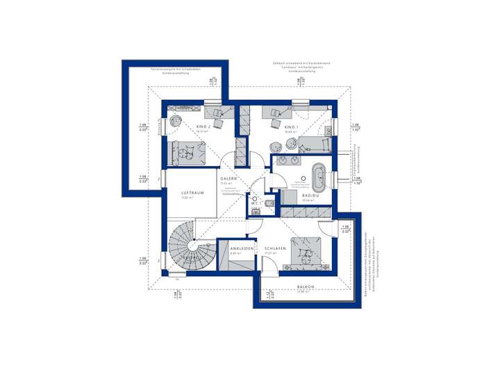 Das CONCEPT-M 193 von Bien-Zenker ist eine moderne Interpretation der klassischen Stadtvilla und verbindet zeitgemäße Architektur mit großzügigem Raumangebot. Mit zwei Vollgeschossen bietet dieses Traumhaus nicht nur ein ästhetisch ansprechendes Äußeres, sondern auch eine beeindruckende Raumgestaltung. Im Erdgeschoss zieht der Luftraum über dem Essbereich die Blicke auf sich und schafft ein Gefühl von Offenheit und Größe. Im Obergeschoss erwartet Sie ein großes Familienbad mit einer getrennten Toilette, das Ihrem täglichen Leben Komfort und Funktionalität verleiht.