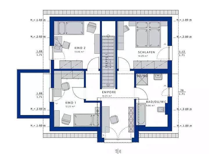 Querhaus für große Fenster im OG