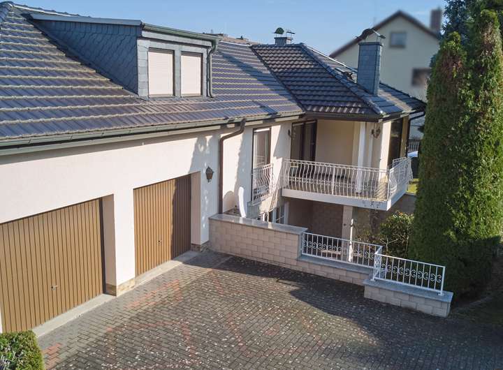 Willkommen in Hanau-Steinheim! In einer ruhigen und begehrten Wohnlage erwartet Sie dieses großzügige Einfamilienhaus auf einem weitläufigen Eckgrundstück von ca. 629 m². Das von der renommierten Firma Streif Eigenheimbau GmbH errichtete Fertighaus aus dem Jahr 1980 überzeugt durch seine durchdachte Raumaufteilung und bietet mit insgesamt ca. 182 m² Wohnfläche reichlich Platz für eine große Familie oder das Modell „Mehrgenerationenwohnen“. Der Lebensmittelpunkt des Hauses befindet sich im Erdgeschoss. Beim Betreten der Etage gelangen Sie in den Eingangsbereich mit Garderobe und einem Gäste-WC zur linken Hand. Ebenfalls auf der linken Seite befindet sich die geräumige Küche mit Einbauten und Elektrogeräten, die im Kaufpreis enthalten sind. Der lichtdurchflutete Wohn- und Essbereich, der durch edle italienische Fliesen ein mediterranes und hochwertiges Ambiente ausstrahlt, lädt zum Verweilen ein. Von hier aus haben Sie direkten Zugang auf den Balkon – der ideale Ort für ein Frühstück in der Sonne oder entspannte Abendstunden. Der private Schlafbereich umfasst drei gut geschnittene Schlafzimmer sowie ein Badezimmer und rundet das Raumangebot auf dieser Ebene praktisch ab. Im Untergeschoss befindet sich eine vollwertige, ca. 80 m² große Einliegerwohnung, die sich ideal zur Vermietung, für ältere Kinder oder als Arbeitsbereich eignet. Sie verfügt über einen eigenen Wohn-Essbereich mit direktem Zugang zur Souterrain-Terrasse, eine Küche, drei weitere Schlafzimmer sowie ein modernes Tageslichtbad mit Dusche. Zwei Kellerräume stehen ebenfalls zur Verfügung. Das Haus wurde stetig gepflegt und erweitert. Besonders hervorzuheben ist die Dacherweiterung aus dem Jahr 1988: Durch den Ausbau des Dachbodens über der Garage wurde enorm viel zusätzlicher Stauraum und individuelle Nutzungsfläche geschaffen. Auch energetisch wurde investiert: Das Dach wurde ca. 2015 neu gedeckt und gedämmt, was für ein angenehmes Raumklima und den Werterhalt der Immobilie sorgt. Das Eckgrundstück bietet viel Freiraum rund um das Haus. Für Ihre Fahrzeuge steht eine geräumige Doppelgarage bereit. Ein angrenzender Geräteschuppen bietet praktischen Platz für Gartengeräte, Fahrräder oder Werkstattbedarf. Dieses Objekt in Hanau-Steinheim ist ein wahres Raumwunder und bietet vielfältige Nutzungsmöglichkeiten in ruhiger Lage. Ob als großes Einfamilienhaus oder als Renditeobjekt mit zwei Einheiten – hier können Sie Ihren Wohntraum verwirklichen. Gerne zeigen wir Ihnen diese Immobilie bei einer persönlichen Besichtigung.