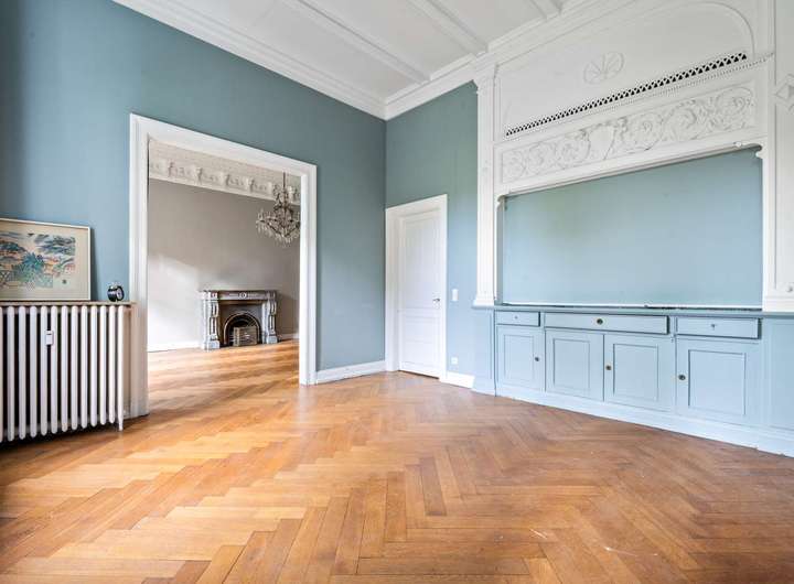 Die Villa teilt sich derzeit in drei großzügig geschnittene Wohneinheiten auf, die sich durch klassische Jugendstilelemente und ihren besonderen Altbaucharme auszeichnen. Hohe Decken, aufwendige Stuckverzierungen und teilweise original erhaltene Parkettböden verleihen den Räumen ein repräsentatives und zugleich wohnliches Ambiente.