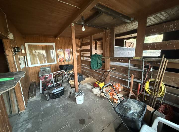 Pferdeliebhaber können auf der Wiese/Weide mit zwei Pferdeboxen ihre Tiere unterbringen.