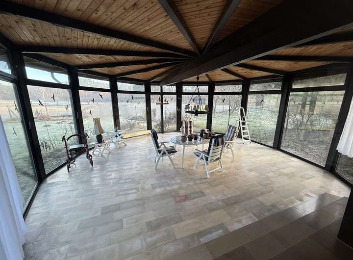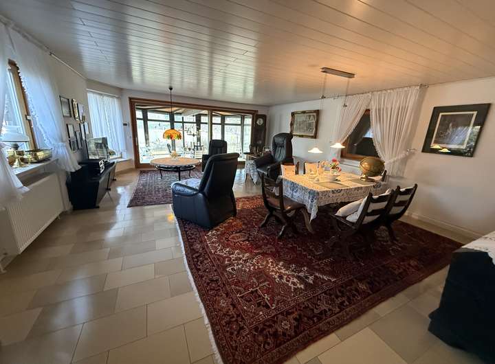 Wohnzimmer mit direktem Zugang zum beheizten Wintergarten (Baujahr 1995)