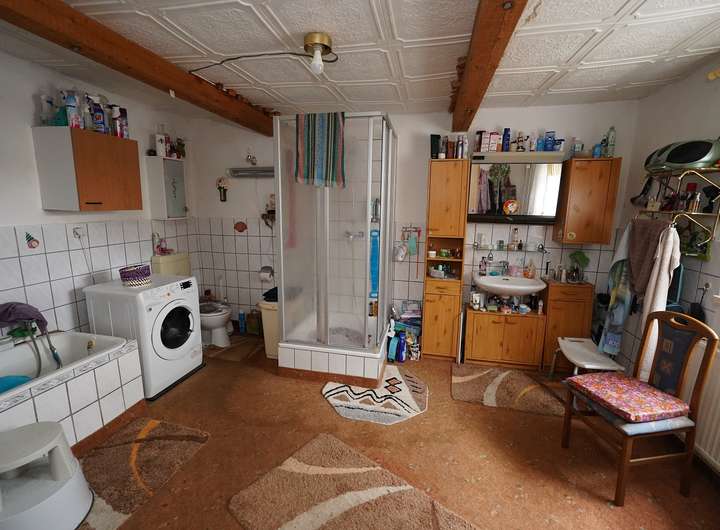 Das Wohnhaus befindet sich in einem sanierungsbedürftigen Zustand und müsste komplett saniert/modernisiert werden. mit viel Fleiß kann hier wieder ein ansehnliches Zuhause entstehen. Der große Garten braucht auch wieder neue Ideen, um wieder zu erblühen. Leider ist es der Eigentümerin nicht weiter möglich, aus eigenen Mitteln eine Sanierung zu ermöglichen.
