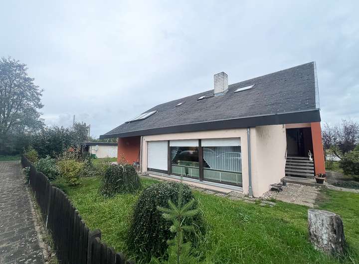 Es handelt sich um ein modernes Einfamilienhaus mit einer Einliegerwohnung im Dachgeschoss. Das Wohnhaus bietet idealen Raum für eine junge Familie und verfügt im Erdgeschoss über zwei versetzte Wohnebenen, die für ein offenes und großzügiges Raumgefühl sorgen.