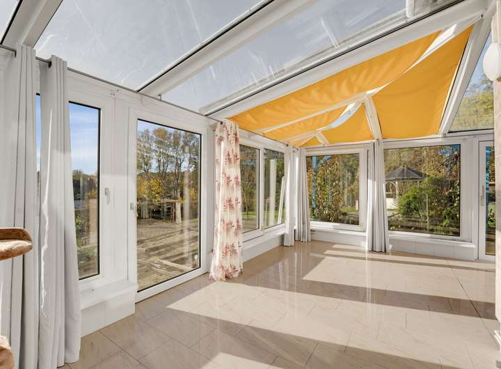 Sieben Zimmer auf drei Ebenen inkl. Gästezimmer, Hobbyraum, Galerie, Arbeitszimmer und großem Schlafzimmer im Dachgeschoss, Großzügiger Wintergarten in L-Form, offen zum Wohnbereich, Zusätzliche Räume im Keller (Hauswirtschaft, Lager, Sauna)