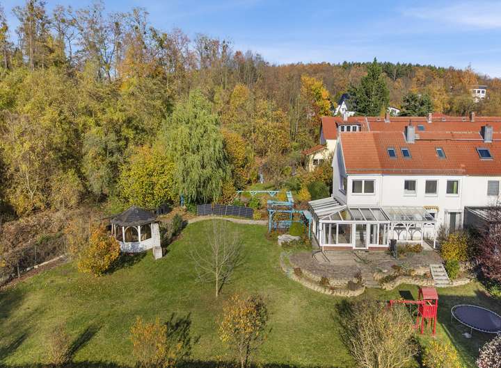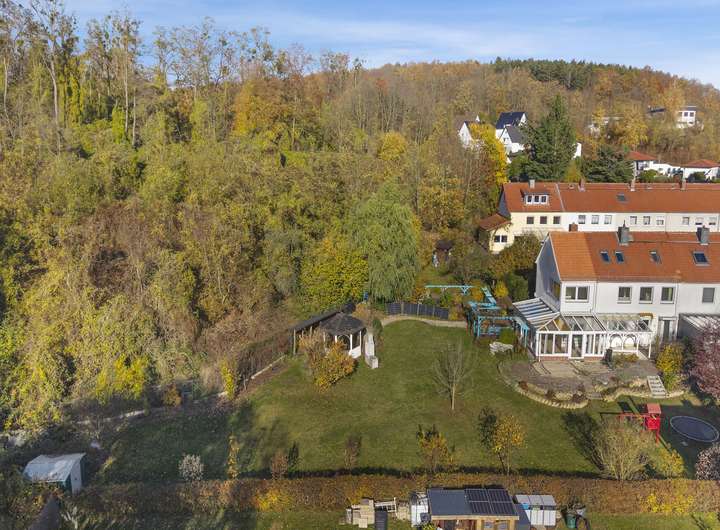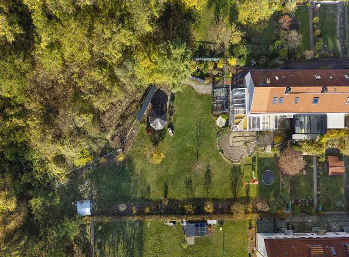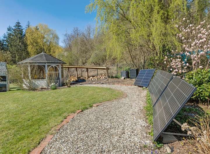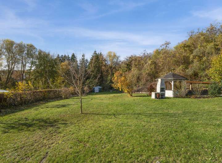 Der an ein Waldstück grenzende Garten ist ein echtes Highlight: Zwei Terrassen, Obstbäume, Kräuterspirale, Weinreben an der Pergola, Pavillon, Gartenschuppen, Steinofen und viel Platz für Spiel- und Freizeitmöglichkeiten schaffen eine besondere Lebensqualität. Vier PV-Module, ein überdachter Holzlagerplatz sowie ein separater Gartenzugang ergänzen das Angebot.