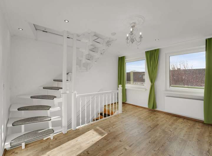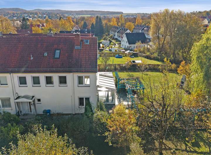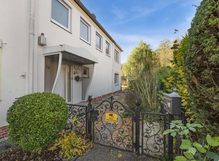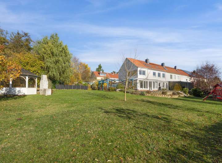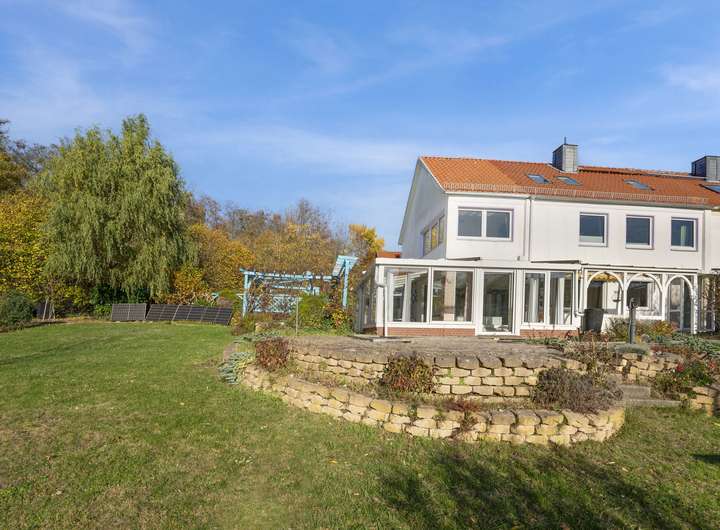 Das charmante Haus liegt am Ende einer ruhigen Häuserreihe und bietet durch das großzügige Grundstück von 1.472 m² ein hohes Maß an Privatsphäre. Mit 193 m² Wohnfläche und sieben Zimmern eröffnet sich viel Platz für Familie, Hobbys und individuelle Wohnideen.