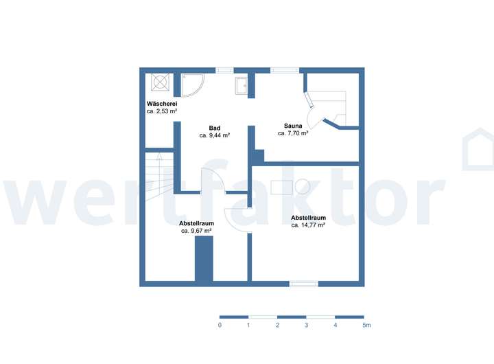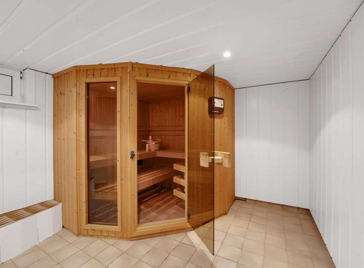 Der Keller bietet einen Hauswirtschaftsraum, Waschküche, Lagerraum, ein Duschbad sowie eine voll funktionsfähige Sauna.