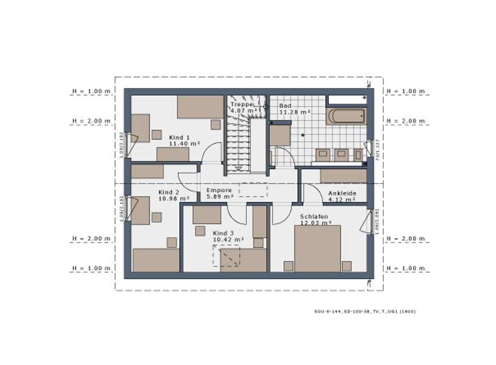 Die dargestellten Grundrisse verstehen sich als Beispiel/Vorschlag und können ohne Mehrkosten individuell umgeplant werden, insofern die Gesamtwohnfläche / bebaute Fläche gleich beleibt. Die Gesamt-Wohnfläche und Hausgeometrie/-Architektur kann gegen Preiskorrektur geändert angeboten werden.