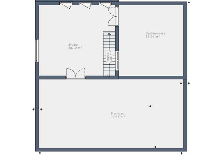 Die dargestellten Grundrisse verstehen sich als Beispiel/Vorschlag und können ohne Mehrkosten individuell umgeplant werden, insofern die Gesamtwohnfläche / bebaute Fläche gleich beleibt. Die Gesamt-Wohnfläche und Hausgeometrie/-Architektur kann gegen Preiskorrektur geändert angeboten werden.