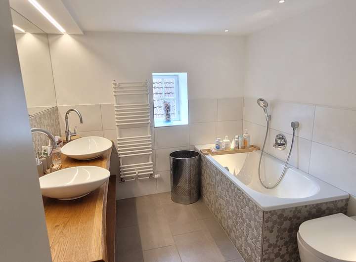 Hinter der historischen Fassade entfaltet sich ein Wohnkonzept, das modernen Komfort, hochwertige Materialien und eine klare, zeitgemäße Gestaltung miteinander vereint. Schon beim Betreten spürt man die besondere Atmosphäre dieses außergewöhnlichen Hauses. Das Highlight: Ein riesiger Gewölbekeller perfekt als Weinlager, Rückzugsort, Atelier oder einfach als beeindruckendes Stück Geschichte im Alltag.