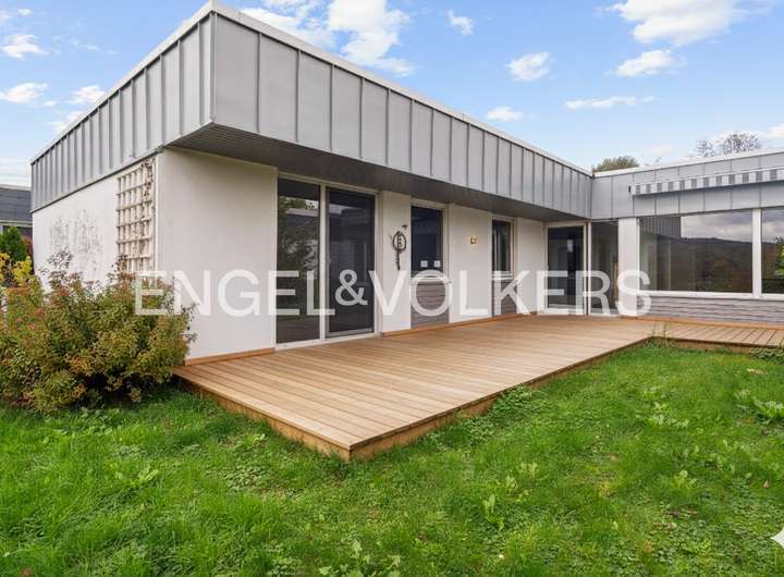 Dieser schöne Bungalow vereint zeitlose Eleganz mit wohnlichem Komfort. Auf einer Ebene bietet er Ihnen ein harmonisches Raumkonzept, hochwertige Materialien und eine Ausstattung, die keine Wünsche offenlässt. Bodentiefe Fenster durchfluten die Räume mit Licht und schaffen eine freundliche, offene Atmosphäre. Der großzügige Wohn- und Essbereich lädt zum Verweilen und Entspannen ein – ideal für gemütliche Abende mit Familie und Freunden. Die optimale Raumaufteilung eignet sich sowohl für Familien als auch für Paare, die das urbane Leben schätzen. Ein Schlafzimmer sowie zwei weitere Zimmer verwirklichen dabei Ihre Vision von einem einzigartigen Wohngefühl. Klar erkennbar ist das Wechselspiel zwischen offenen und geschlossenen Wohnbereichen und hochwertigen, sorgsam ausgewählten Materialien. Schönes Echtholz-Parkett und helle Oberflächen schaffen eine elegante Leichtigkeit. Die Küche ist separat angelegt und bietet ausreichend Platz für kulinarische Kreativität. Durch ihre geschlossene Gestaltung bleibt der Wohnbereich stets aufgeräumt und ruhig – ideal für alle, die Wert auf klare Raumstrukturen legen. Die Immobilie verfügt im Untergeschoss, neben einem Hobbyraum über ein weiteres Badezimmer sowie über eine moderne Hebeanlage zur sicheren Abwasserentsorgung.