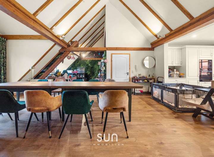 Neben der bestehenden Wohnfläche bietet das Haus weiteres Potenzial zur individuellen Entfaltung. In angrenzenden Gebäudeteilen lassen sich zusätzliche ca. 200 m² Wohn- oder Nutzfläche realisieren. Ob als Erweiterung des Wohnraums, für Gäste, Hobby, Homeoffice oder eine separate Einheit für heranwachsende Kinder – die Möglichkeiten sind vielseitig und langfristig angelegt.