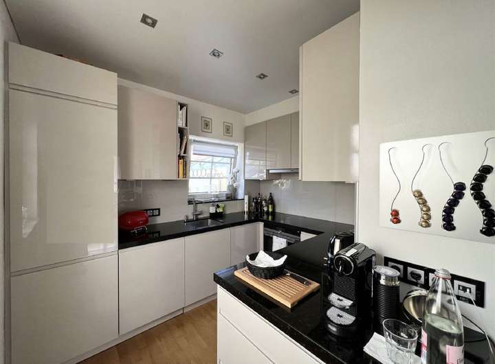 hochwertige und neuwertige Einbauküche mit Granitarbeitsplatte, Kaminofen, überwiegend Parkett-Böden,
