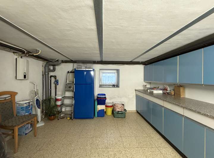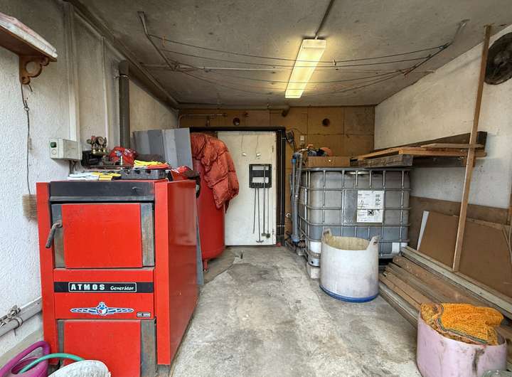 Beheizt wird das Objekt über eine Kombination aus Ölheizung (BJ 1991) und Holzvergaser (BJ 2010). Künftige Eigentümer sind also flexibel in der Wahl der Heizmethode, da der Holzvergaser auch das Wohnhaus versorgt. Die Solarthermie im Garten unterstützt zusätzlich die Warmwasserbereitung. Der Keller bietet neben dem Heizungsraum, Vorratsräume sowie Waschküche mit Dusche + WC. Eine Grundwasserabsenkung ist installiert. Beim Einbau der Fußbodenheizung wurde größtenteils die alte Holzbalkendecke durch eine Stahlträgerdecke inkl. Dämmung erneuert.