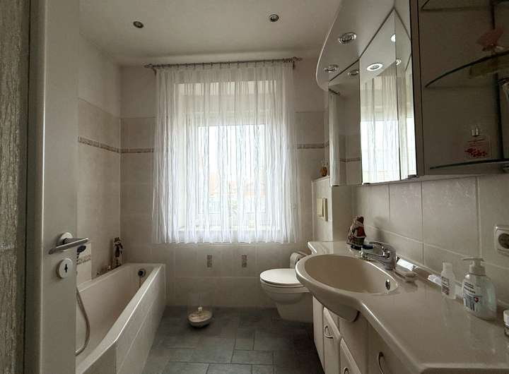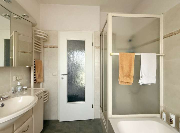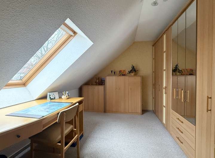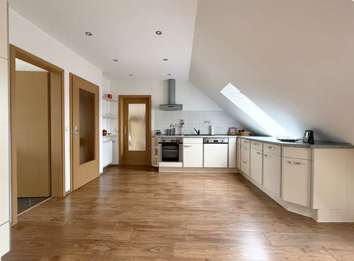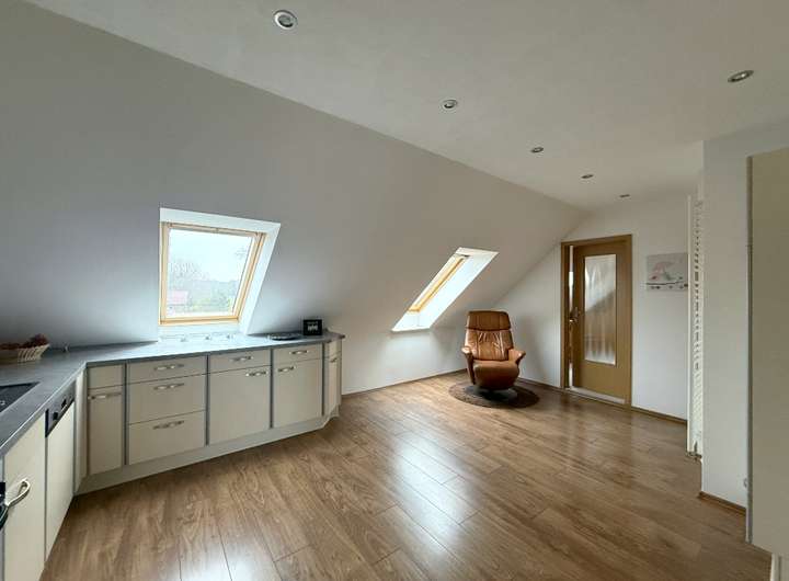 Im Erdgeschoss finden Sie ein Schlafzimmer, ein Wohnzimmer, eine Küche inklusive Einbauküche sowie ein Tageslichtbad mit Dusche und Badewanne auf ca. 73,4m² . Im Dachgeschoss (ca. 76,8m² ) erwartet Sie die zweite, separat nutzbare Wohnung mit zwei Schlafzimmern, einem offenen Küchen- und Essbereich, einem Wohnzimmer sowie einem Tageslichtbad mit Dusche und Badewanne. Der Zugang zum gedämmten Spitzboden erfolgt über eine Nische im Bad – praktische Nutzfläche für zusätzlichen Stauraum.