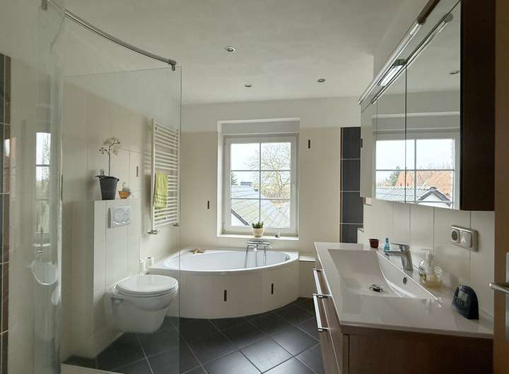 Das Wohnhaus ist nach einem Tapetenwechsel bezugsfertig und weist kaum Renovierungsbedarf auf. In den 90'er Jahren wurde das Dachgeschoss hofseitig auf Vollgeschosshöhe ausgebaut, um weiteren Wohnraum zu schaffen. Anschließend folgten die Sanierung der Klinker-Fassade inklusive Dämmung, das mit Tonziegeln gedeckte, vollisolierte Dach sowie die zusätzliche Dämmung der Giebelseiten. Ab 2001 wurden neue Fenster eingebaut und die Innenräume sowohl im Erd-, als auch im Dachgeschoss stückweise saniert. Dadurch befinden sich nahezu alle Elektro- und Sanitärleitungen auf aktuellem Stand. Die zusätzlich installierte Fußboden-Heizung in vielen Räumen sorgt für eine wohlige Atmosphäre.