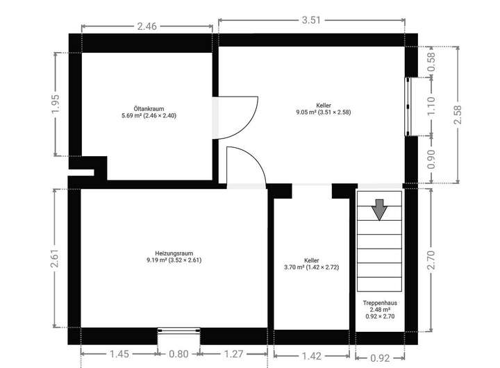Der Keller bietet zusätzliche Nutzfläche. Mit einem großzügigen Raum, einem Heizungsraum mit Anschlussmöglichkeit für eine Waschmaschine, einem separaten Raum mit dem 3.000-Liter-Öltank sowie einem Abstellraum, der sich unter der Kellertreppe erstreckt.