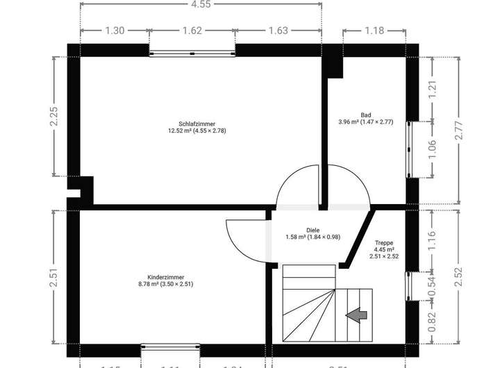 Im Obergeschoss gibt es zwei Schlafzimmer und ein Tageslichtbad.