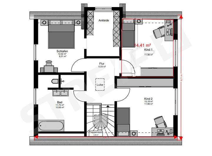 Erleben Sie Ihr Traumhaus mit STREIF - ein Einfamilienhaus, das nach Ihren individuellen Wünschen und Vorstellungen projektiert wird. Mit einer großzügigen Wohnfläche von 148,51 m² bietet dieses Haus in Braunschweig ausreichend Platz für Ihre Familie. Auf einem Grundstück von 532 m² erstreckt sich Ihr zukünftiges Heim über eine Etage mit insgesamt 6 Zimmern, darunter 3 Schlafzimmer und 2 Badezimmer. Die harmonische Raumaufteilung ermöglicht ein komfortables Wohnen für die ganze Familie.